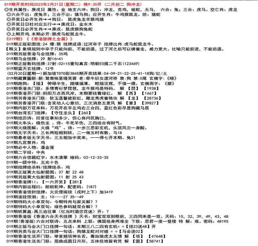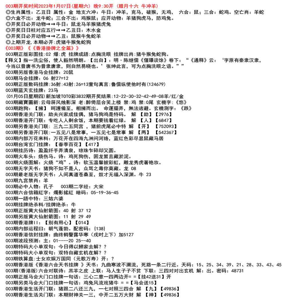 ◎六合不出:牛龙猴;三合不出:鼠蛇鸡;应开动物:羊兔猪虎狗。防:鼠马