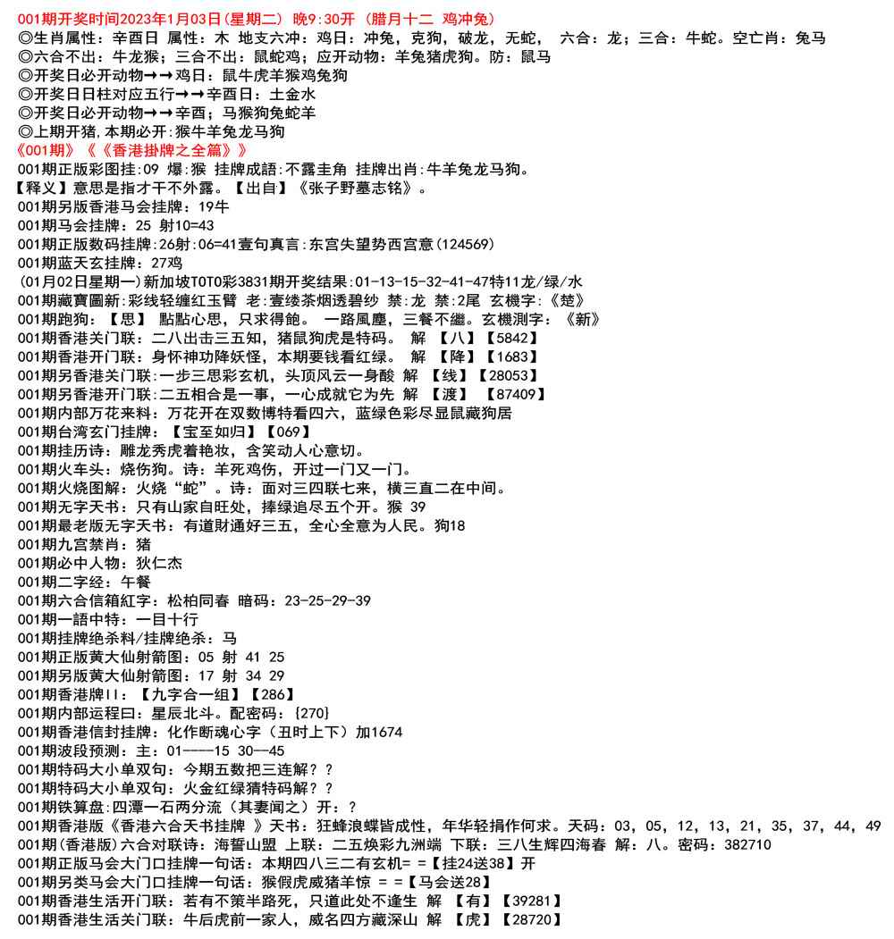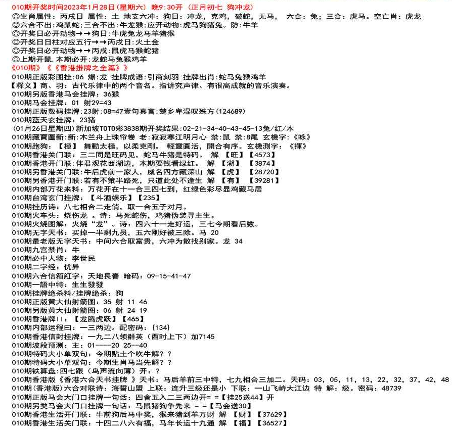 (12月26日星期一)新加坡TOTO彩3829期开奖结果:03-10-31-32-44-47特41狗/蓝/水