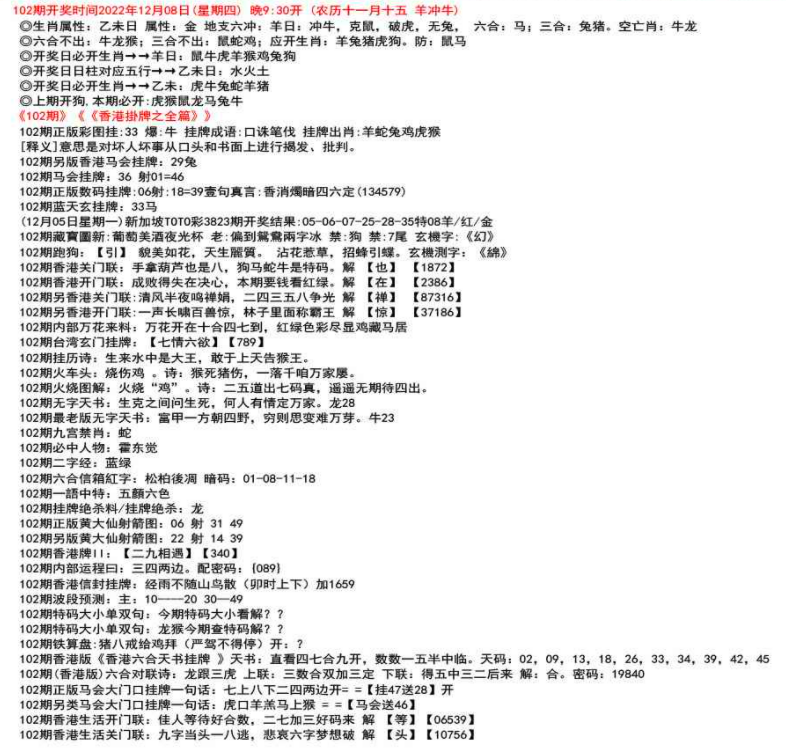 111期开奖时间2022年12月29日(星期四) 晚9:30开 (腊月初七 龙冲狗)◎生肖属性:丙辰日 属性:土 地支六冲:龙日:冲狗,克兔,破猪,无鼠, 六合:鸡;三合:鼠猴。空亡肖:鼠狗
