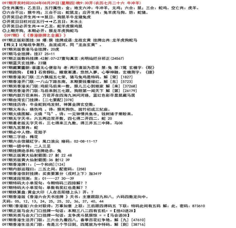 111期(香港版)六合对联诗:三三足养 上联:头在天上脚落地 下联:说是龙来假一字 解:落。密码:38729